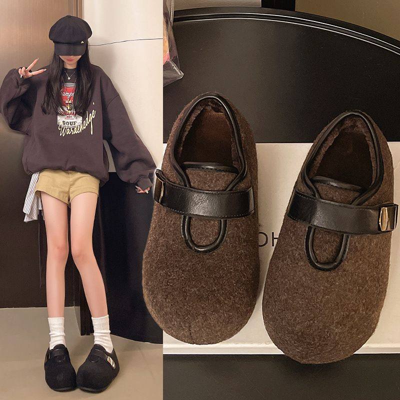 绒面气质淑女风格款平底鞋毛毛鞋秋冬季休闲女单鞋时尚学院风棉鞋