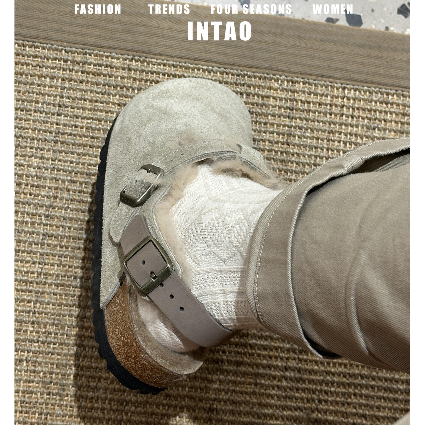 灰色加绒勃肯鞋女秋冬季2025新款毛毡半拖鞋厚底毛毛鞋棉鞋雪地靴