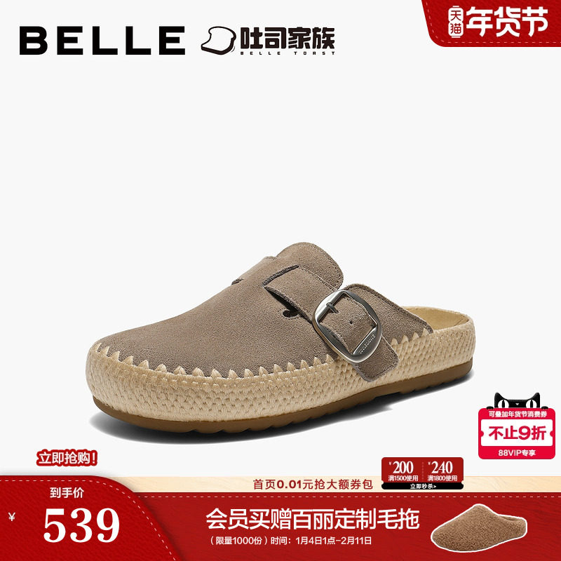 百丽吐司鞋包头勃肯鞋女款2026夏季商场新款编织外穿拖鞋E9A1DBH6