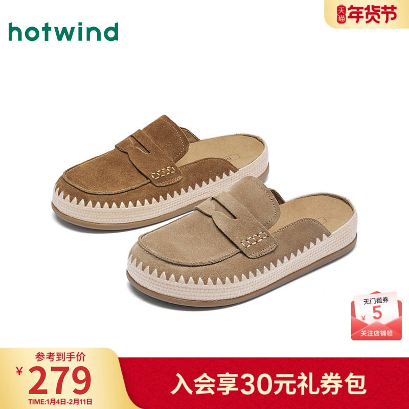 哈森毛毛鞋女款25冬季加绒保暖博肯半拖鞋平底棉鞋一脚蹬豆豆鞋
