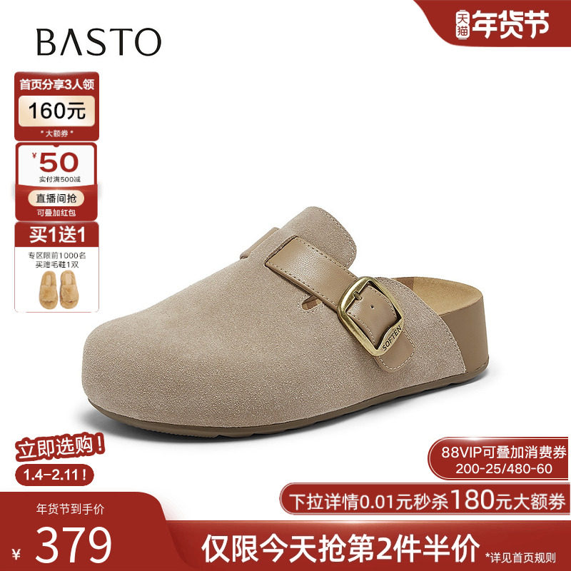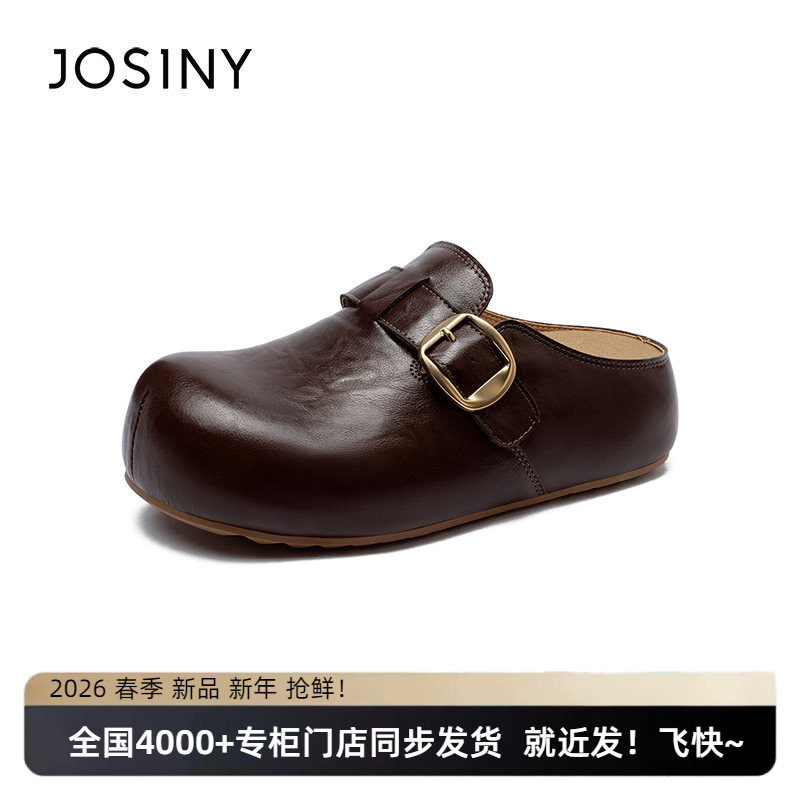 卓诗尼2026春季新款休闲半拖鞋时尚舒适勃肯鞋潮流复古厚底小皮鞋