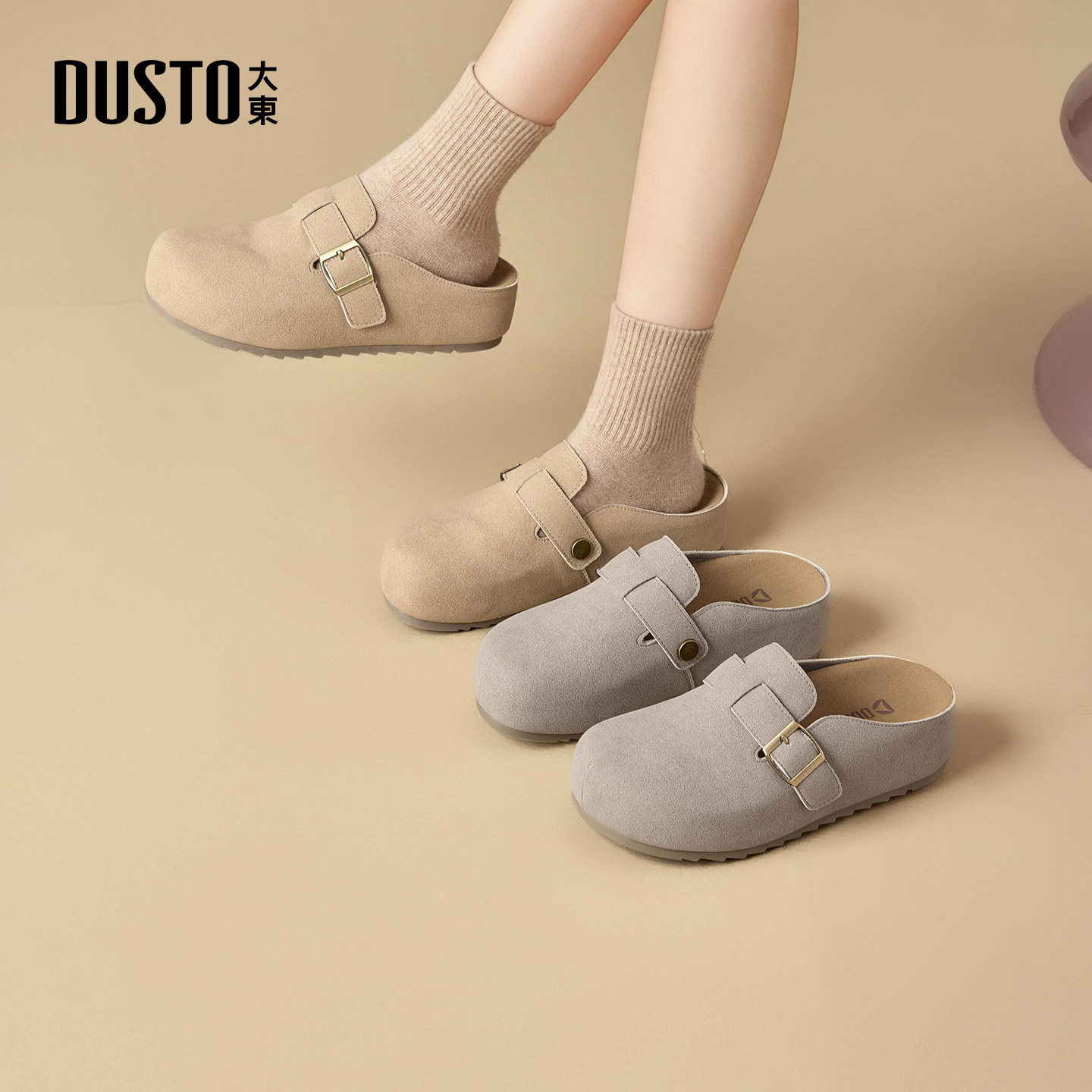 大东女鞋勃肯鞋2026春季新款复古软底舒适女单鞋透气时尚半拖鞋女