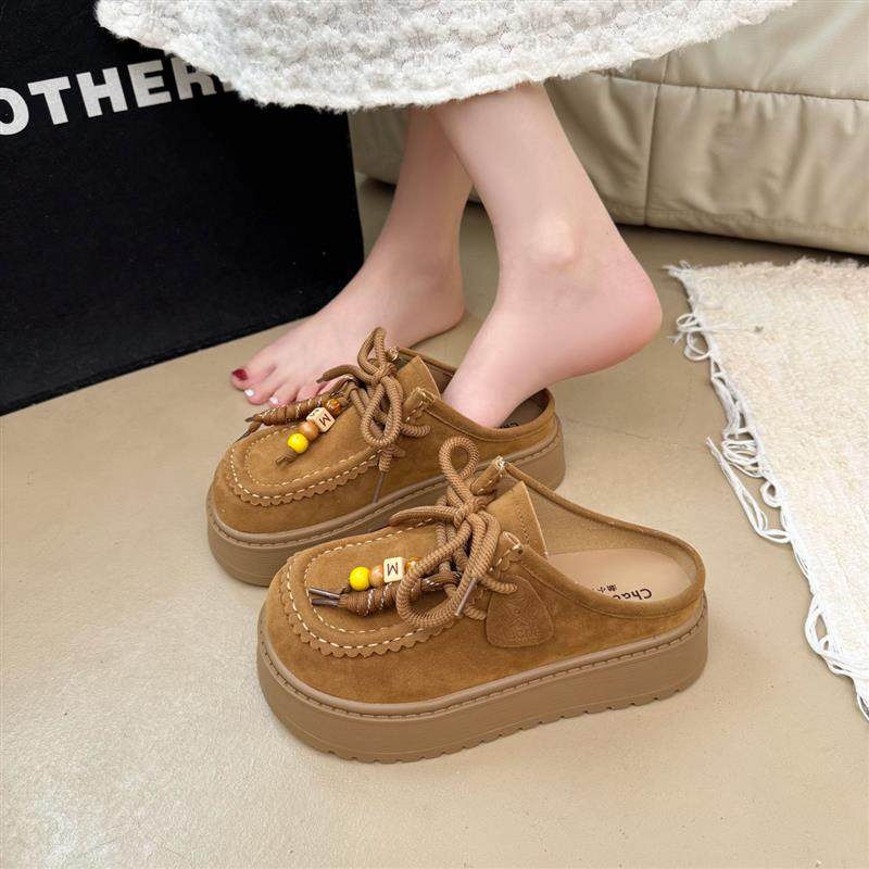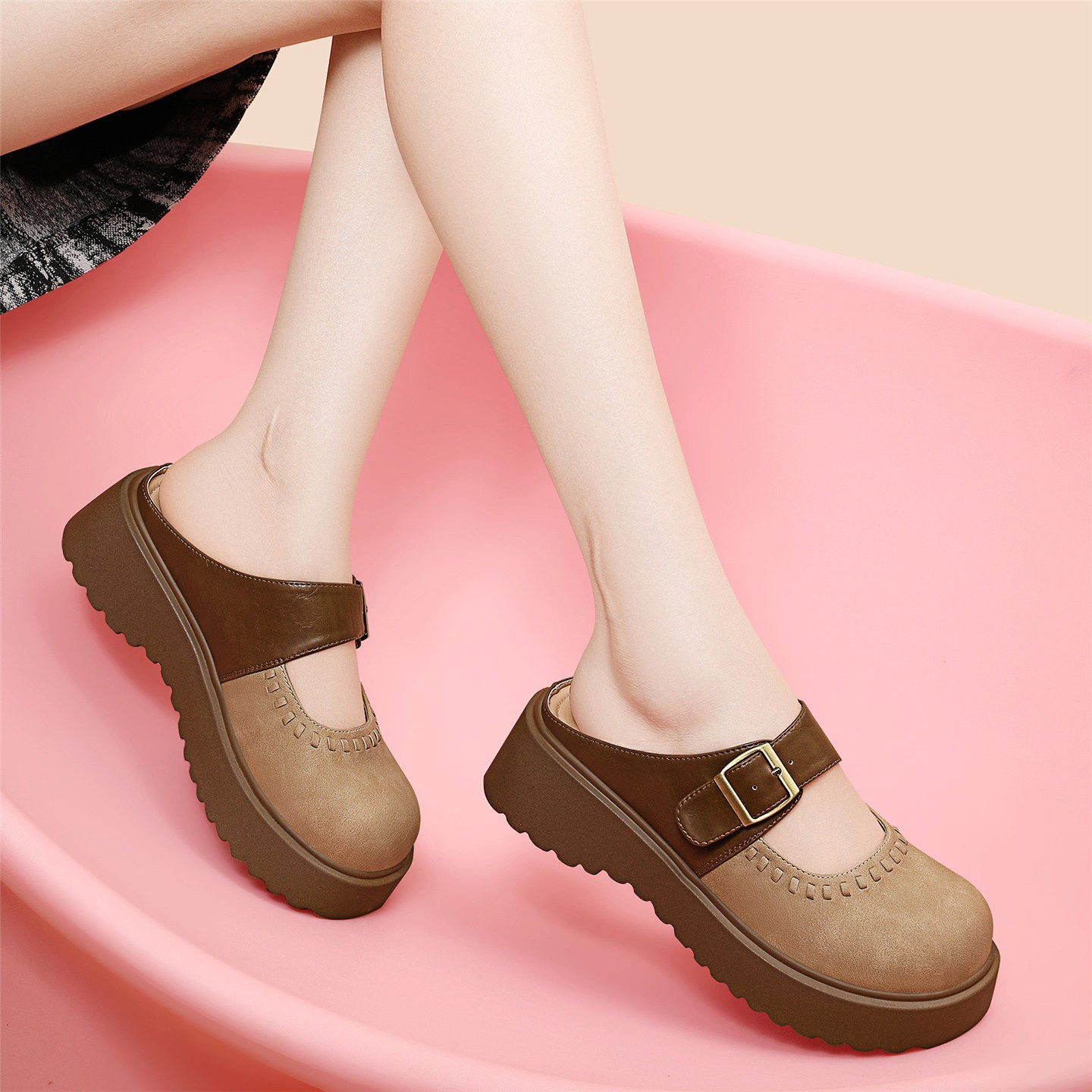 林北北半拖勃肯鞋女春秋配裙子复古法式厚底增高软底包头拖鞋子