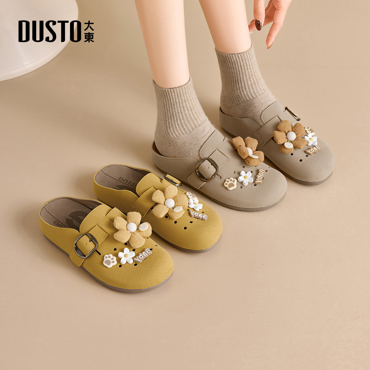 大东女鞋勃肯鞋2026春季新款一脚蹬休闲舒适低跟圆头时尚包头拖鞋