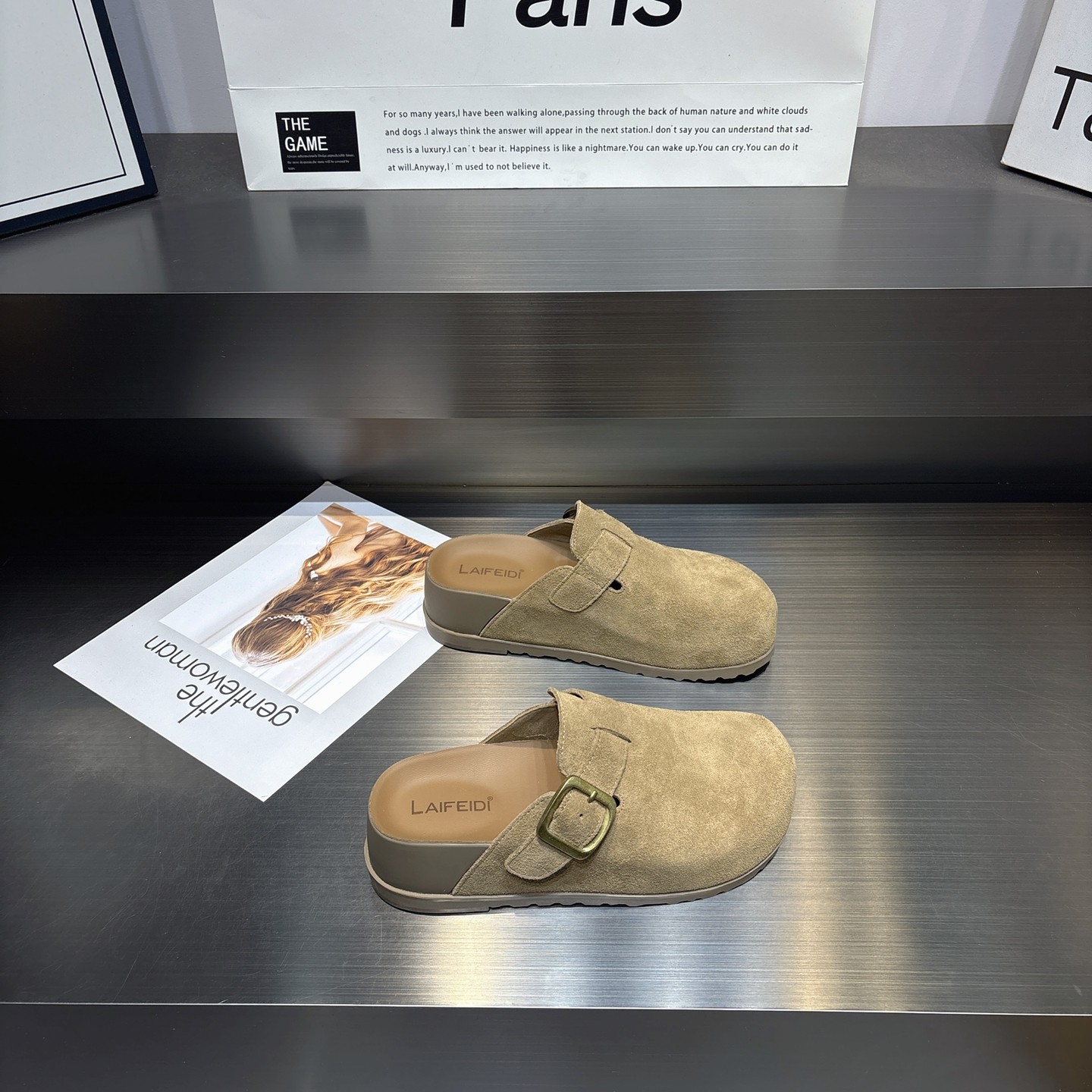 厚底包头拖鞋女外穿半拖懒人鞋2026年春秋季扣带勃肯鞋防滑方扣