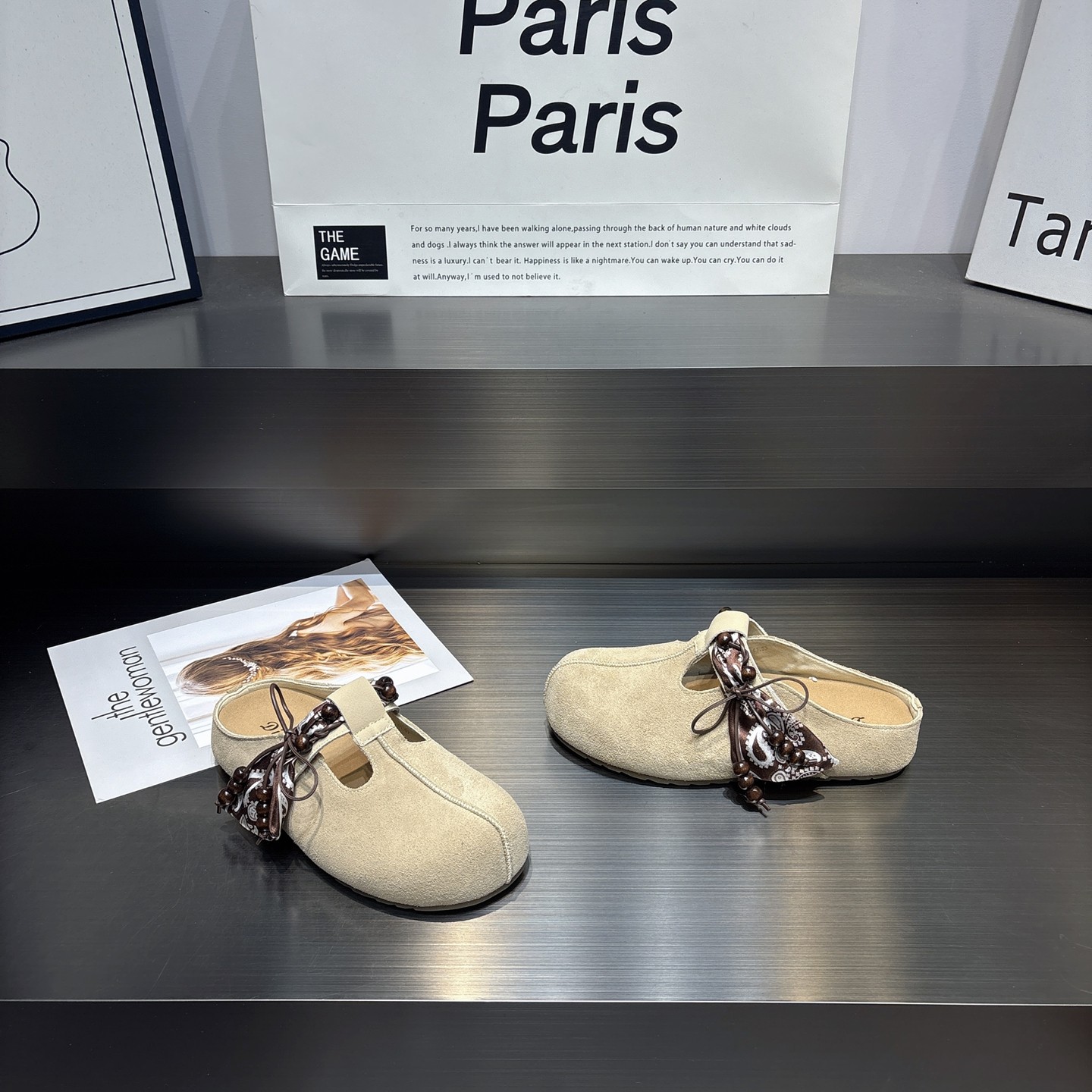 复古刺绣勃肯鞋女2026新款秋季百搭两穿包头穆勒鞋一脚蹬软底拖鞋