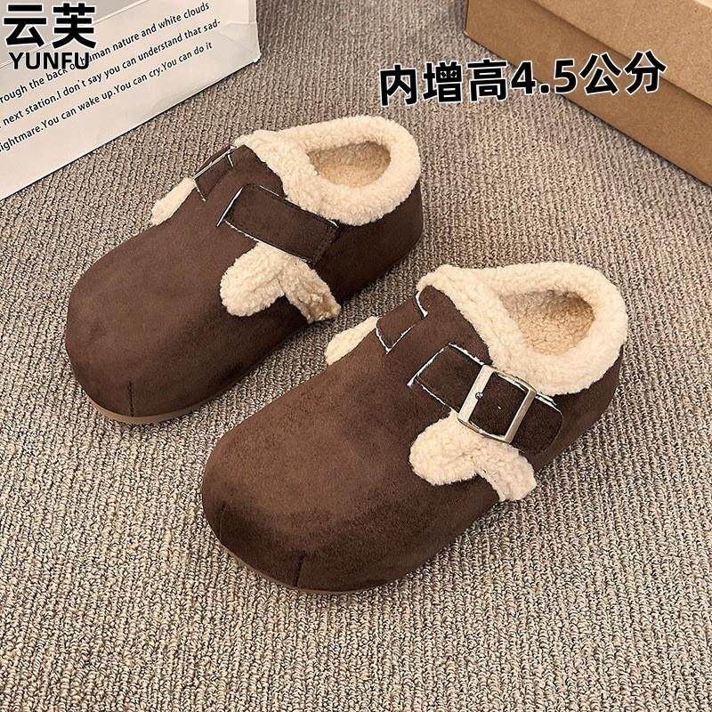 内增高4.5CM毛毛鞋加绒勃肯鞋女2026新款秋冬保暖棉鞋包头半拖鞋