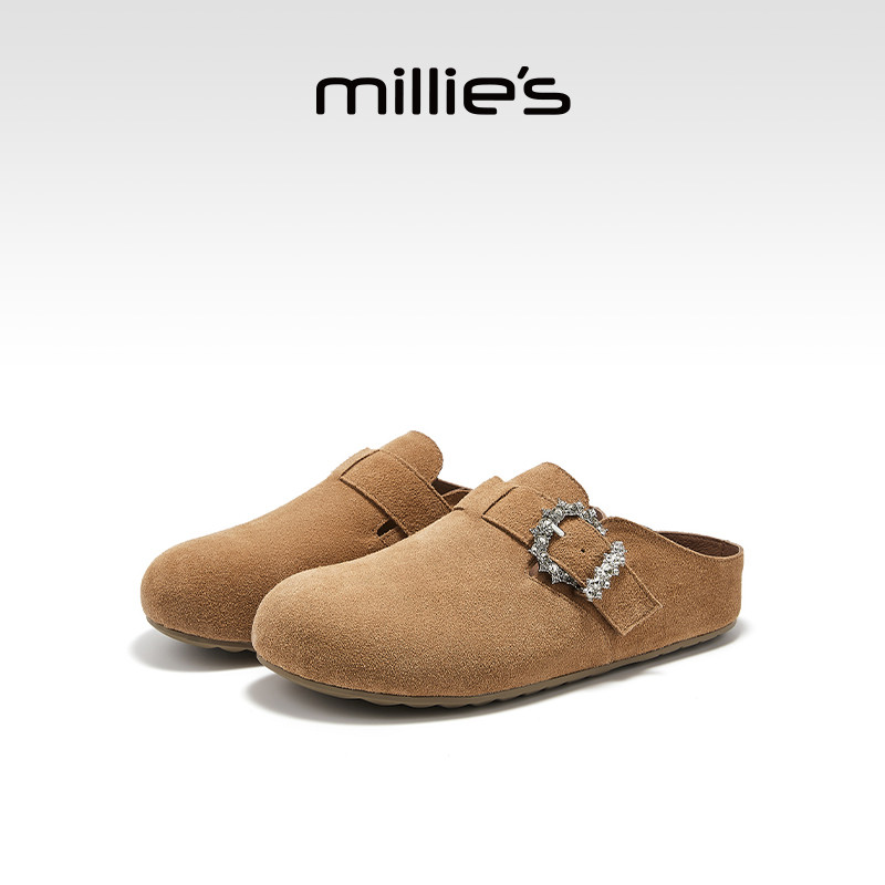MILLIE'S/妙丽2026春季新款女鞋水钻勃肯鞋软木底包头半拖鞋Z