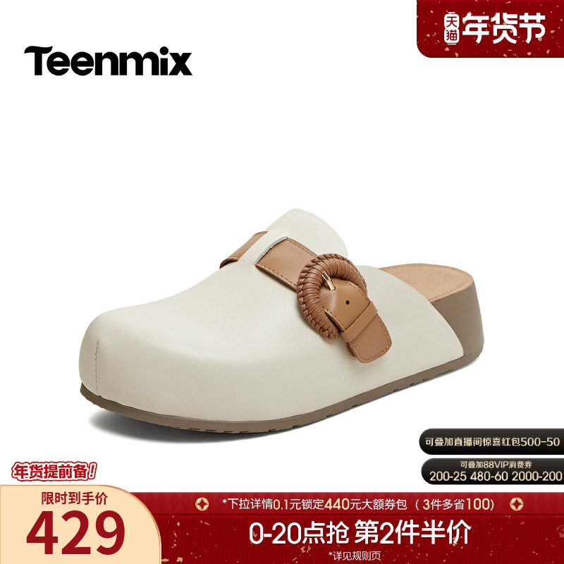 天美意2026夏新款商场同款复古英伦包头拖鞋女勃肯鞋CBD30BH6