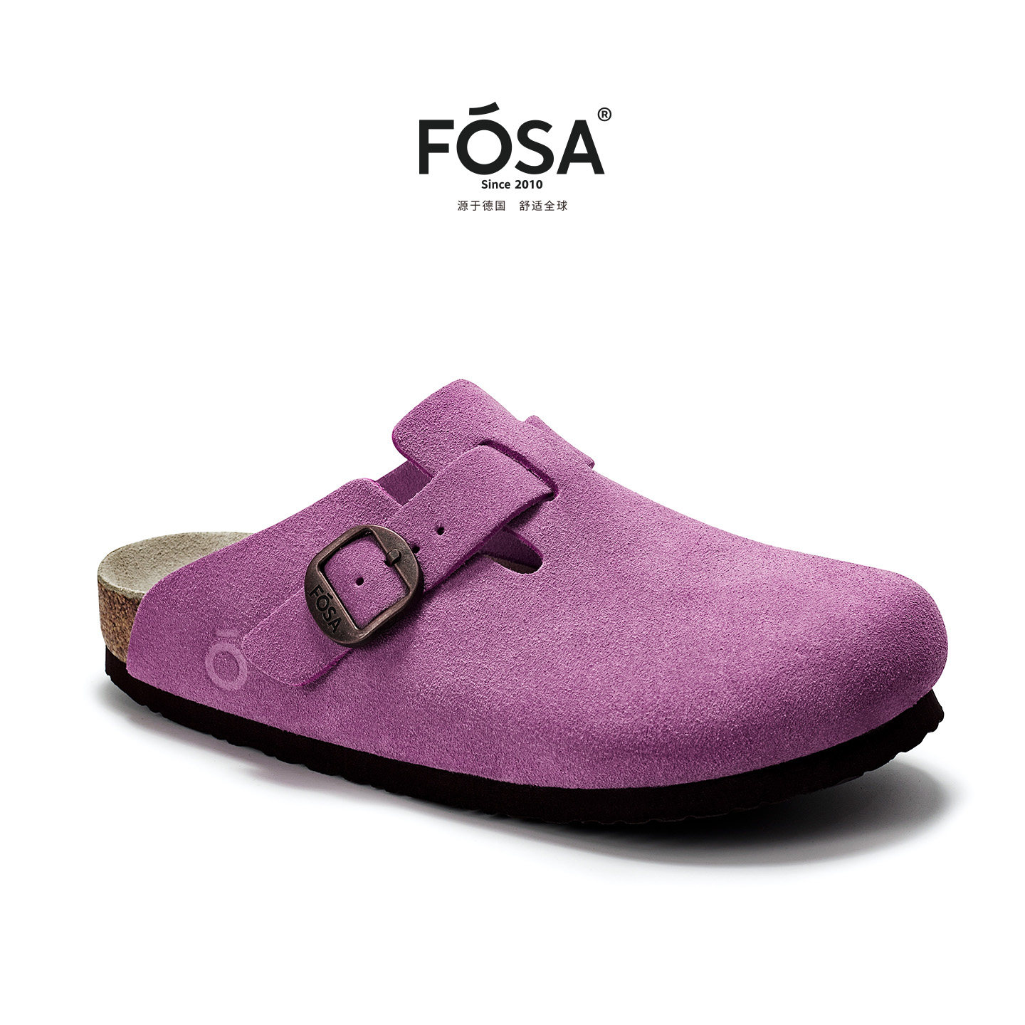 FOSA女士软木拖鞋牛皮真皮舒适加绒款勃肯鞋2026春秋一脚蹬博肯鞋
