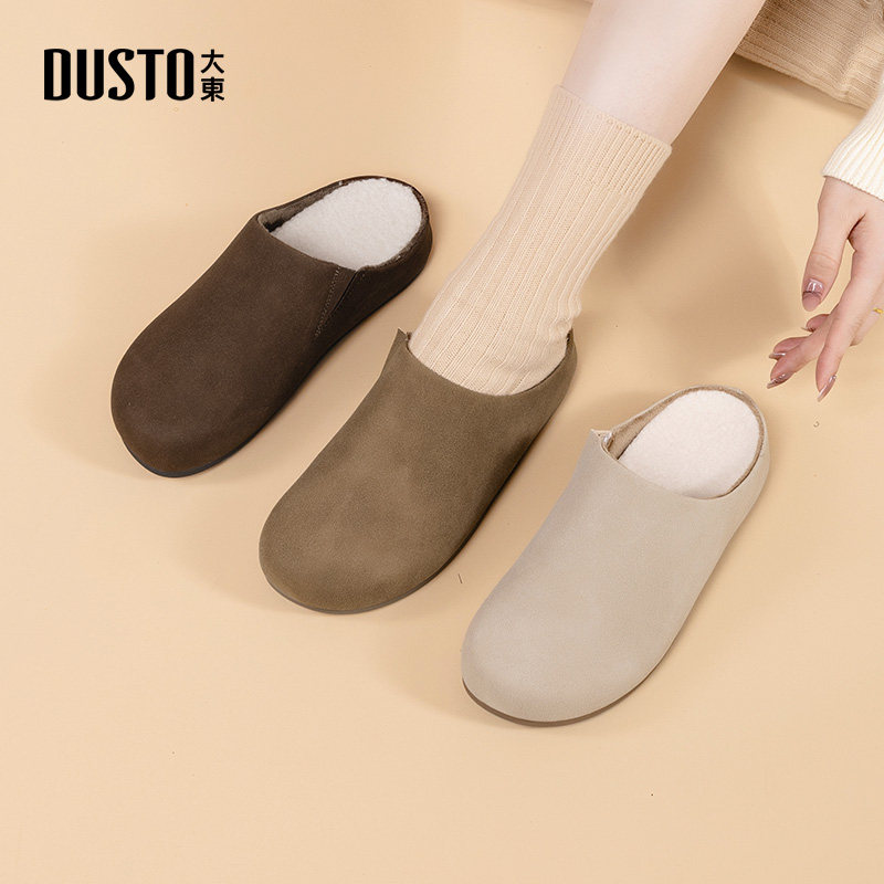 大东女鞋勃肯鞋2025年冬季新款加绒保暖可外穿一脚蹬懒人半拖鞋女