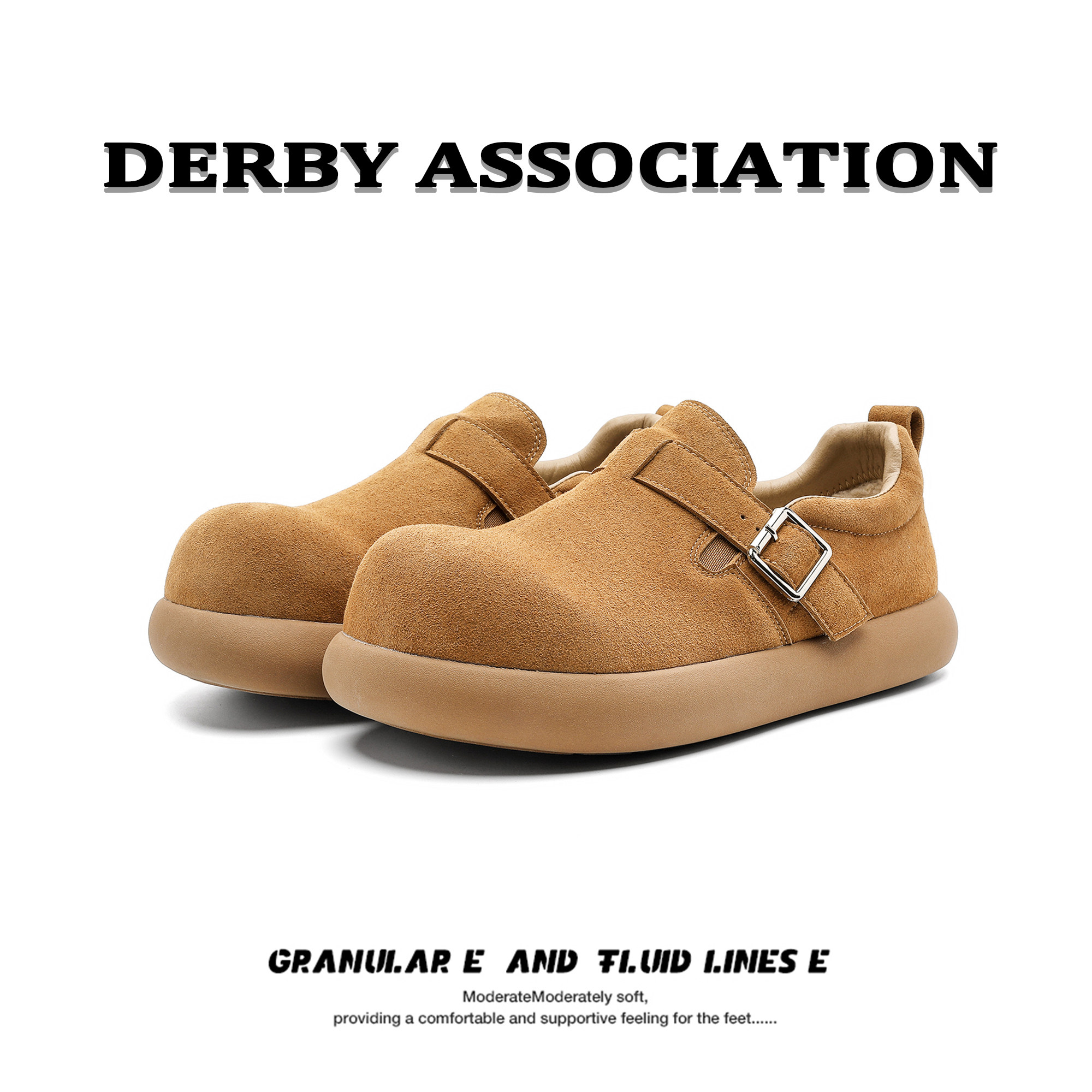 Derby Association男士勃肯鞋磨砂皮搭扣包头拖鞋一脚蹬懒人鞋男