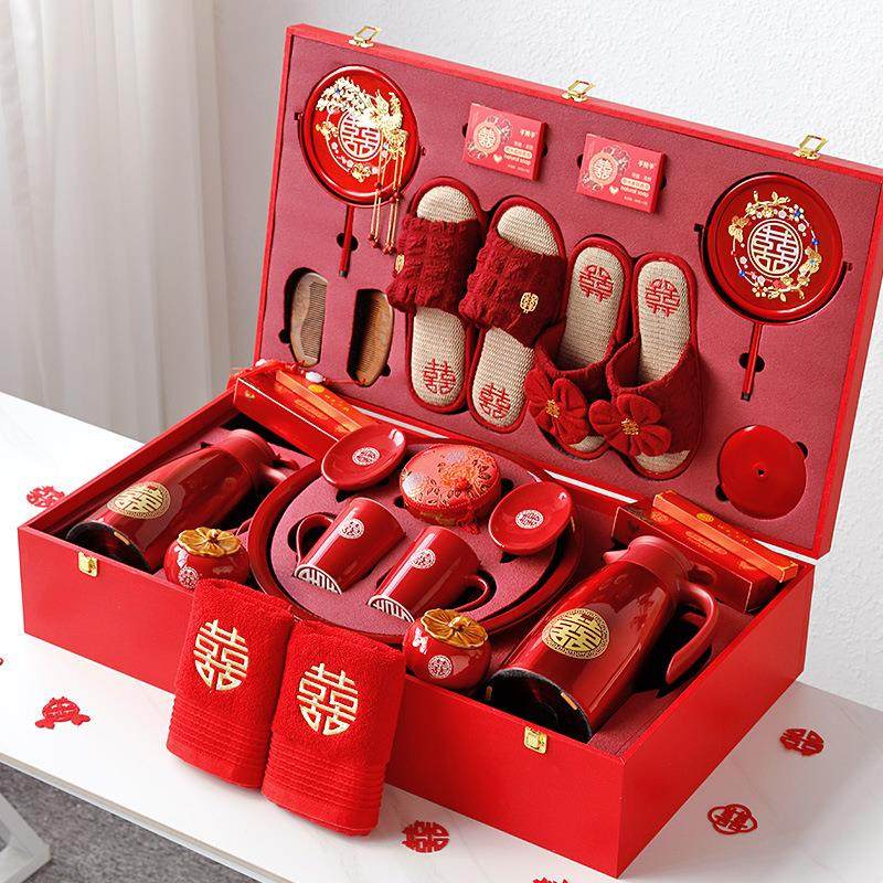 陪嫁用品全套女方备婚新娘嫁妆大全婚庆新人结婚拖鞋洗漱喜盆套装