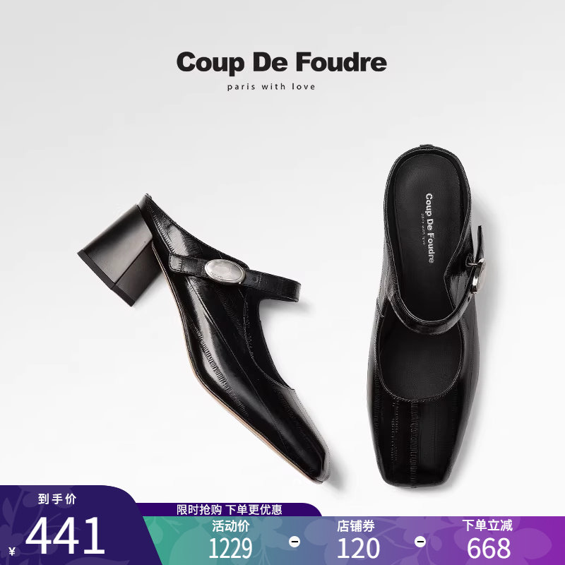 CDF女鞋2025春夏新款法式气质百搭包头拖鞋粗跟简约方头凉拖鞋潮