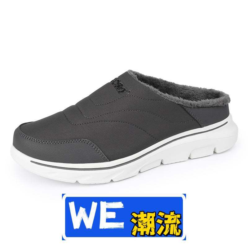 豫园鞋业冬季新款加绒保暖棉鞋半托休闲鞋加厚拖鞋懒人鞋女鞋轻便