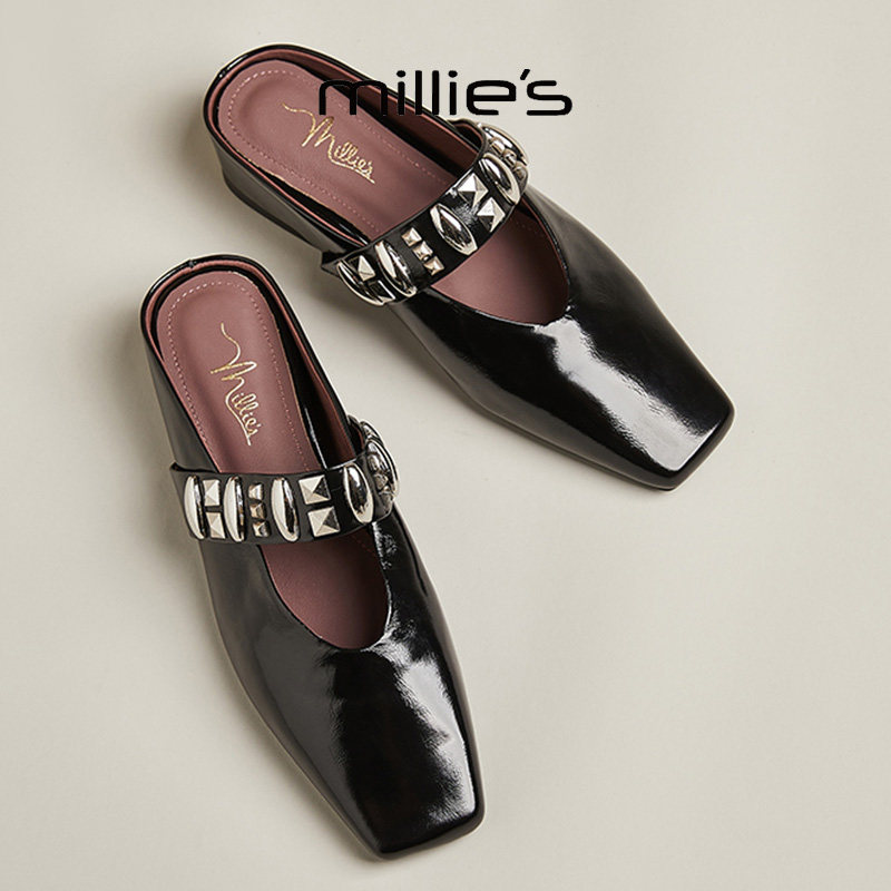 MILLIE'S/妙丽镂空玛丽珍鞋2025夏款一脚蹬半拖鞋法式浅口单鞋女