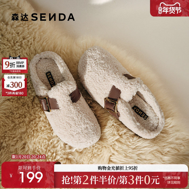 MILLIE'S/妙丽皮带扣独特高级感包头拖鞋柔软保暖舒适雪地棉鞋女