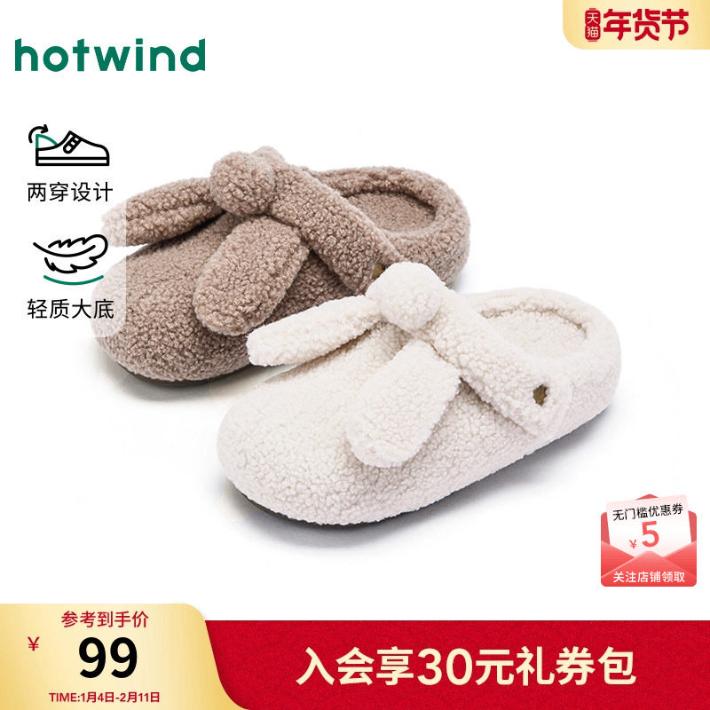 热风卡通毛毛鞋女鞋2025年冬季新款平底舒适家居拖鞋两穿包头拖