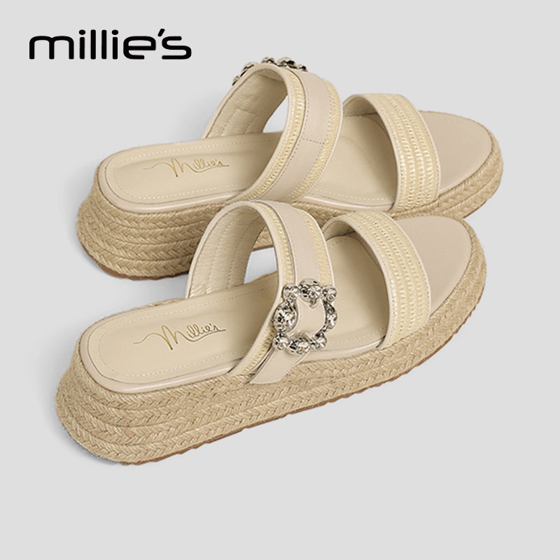 MILLIE'S/妙丽坡跟拖鞋女夏季外穿2025新款时尚百搭草编凉拖鞋