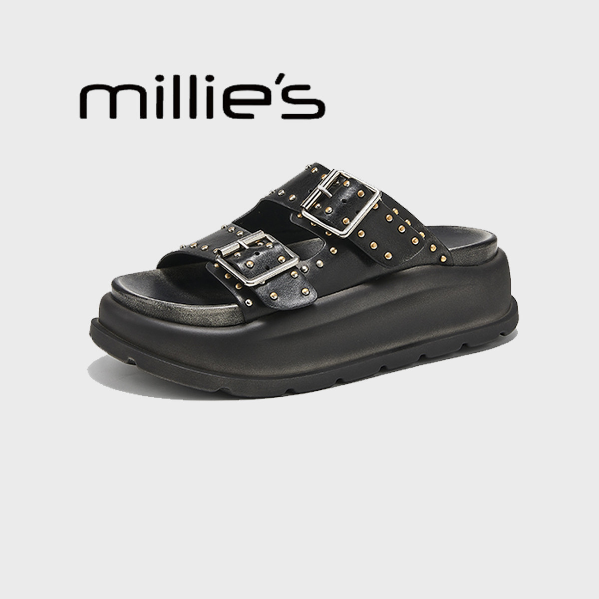 MILLIE'S/妙丽厚底拖鞋女2025夏季新款一脚蹬绝美配裙子勃肯凉拖