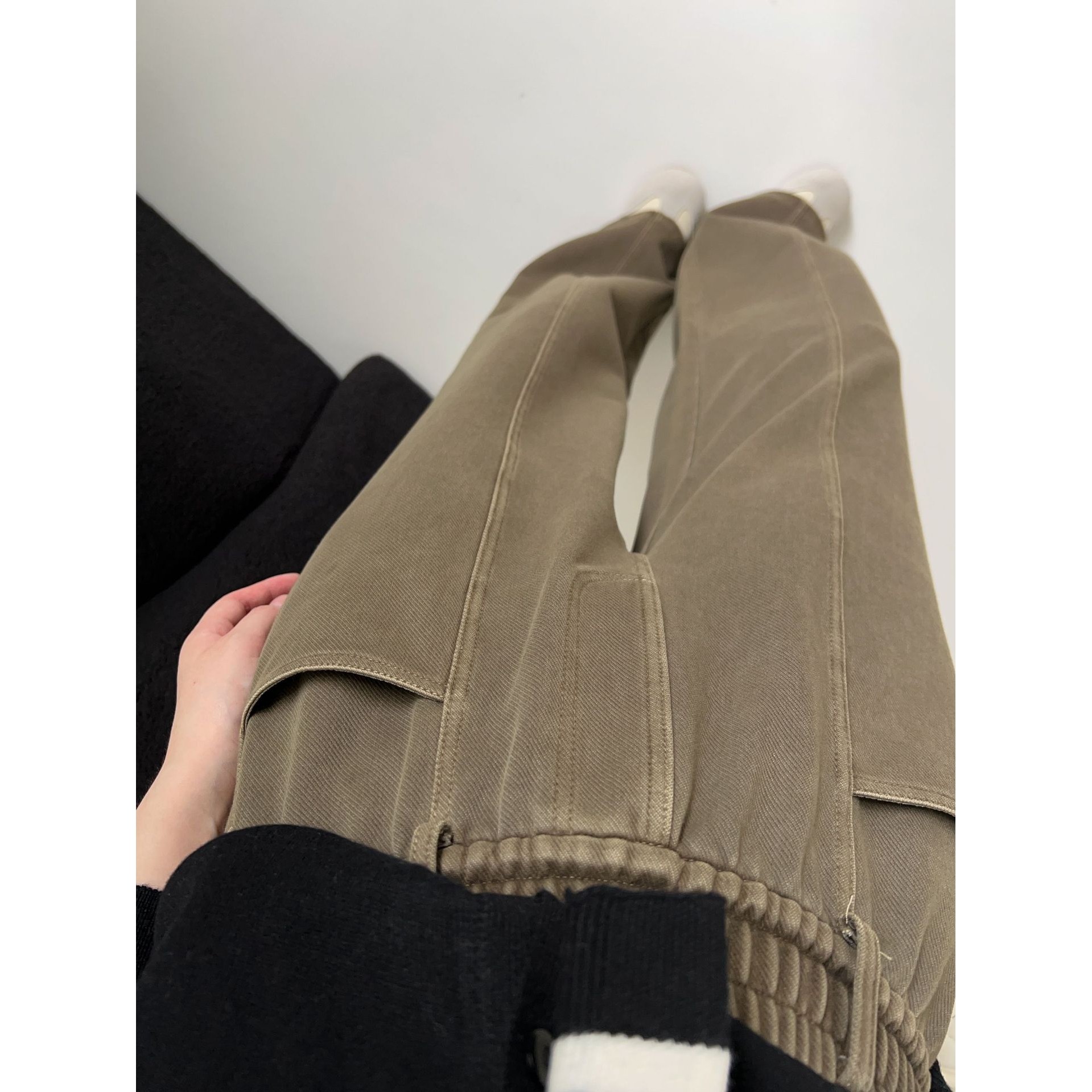 2025秋冬新款做旧斜纹棉牛仔直筒休闲裤女慵懒风烟管裤时尚松紧腰