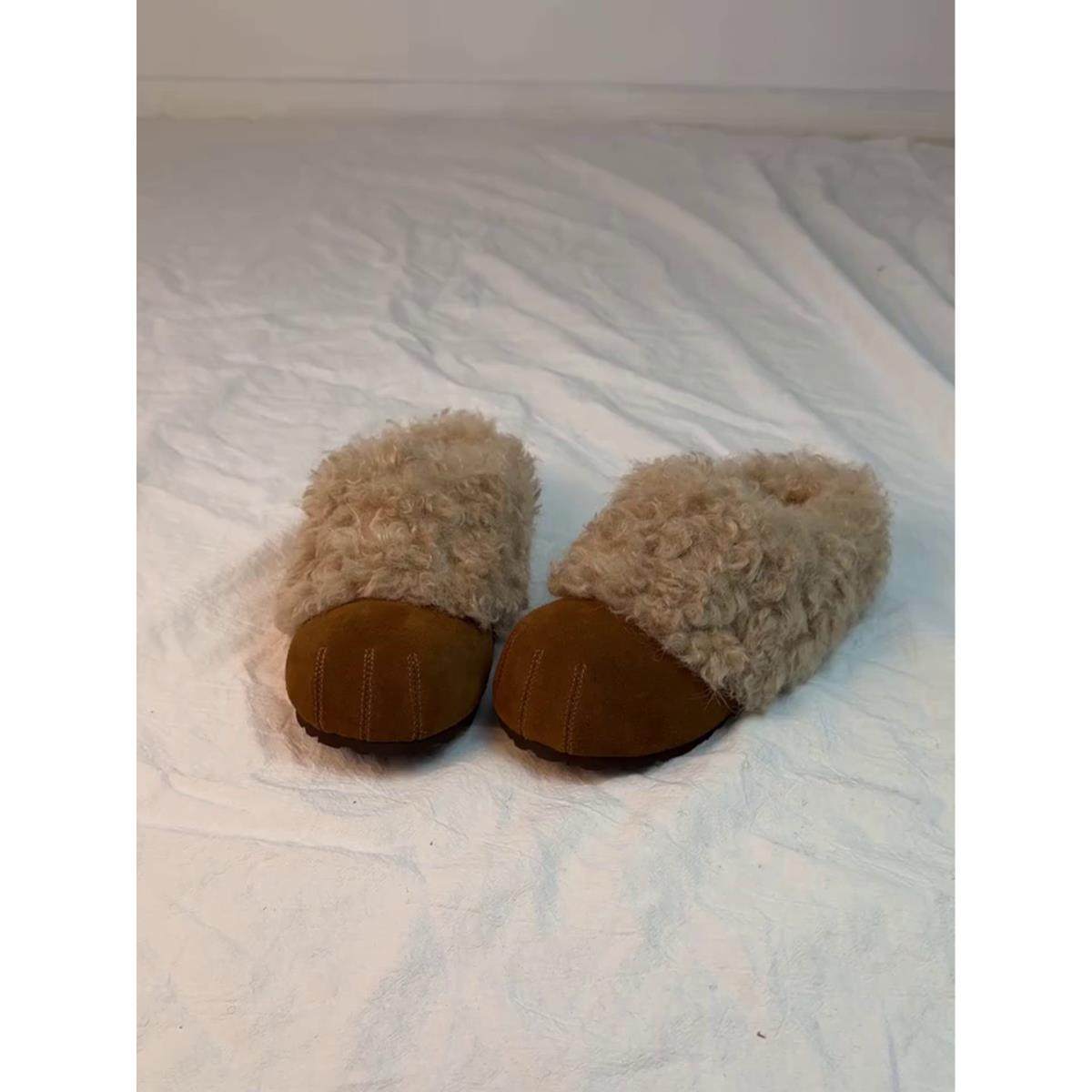 ~暖冬懒人风~2026冬厚底毛毛拖鞋皮带扣包头半拖外穿加绒勃肯鞋40