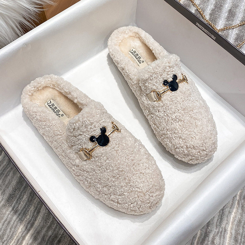 毛拖鞋女外穿2024新款秋季平底仙女鞋羊羔毛大码包头半拖温暖包头
