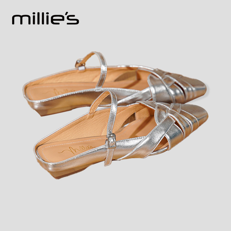 MILLIE'S/妙丽包头半拖鞋女2025夏一脚蹬休闲板鞋复古阿甘德训鞋