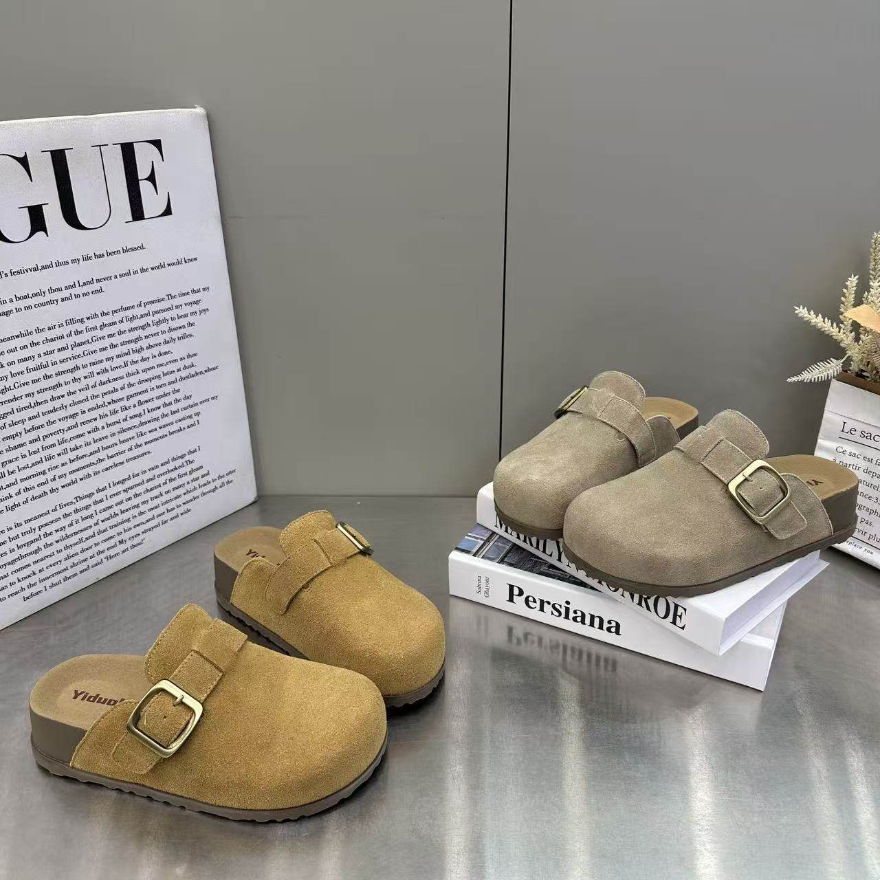 牛皮版~羊毛小土豆包头内增高勃肯毛毛拖鞋女乐福鞋加绒保暖棉鞋