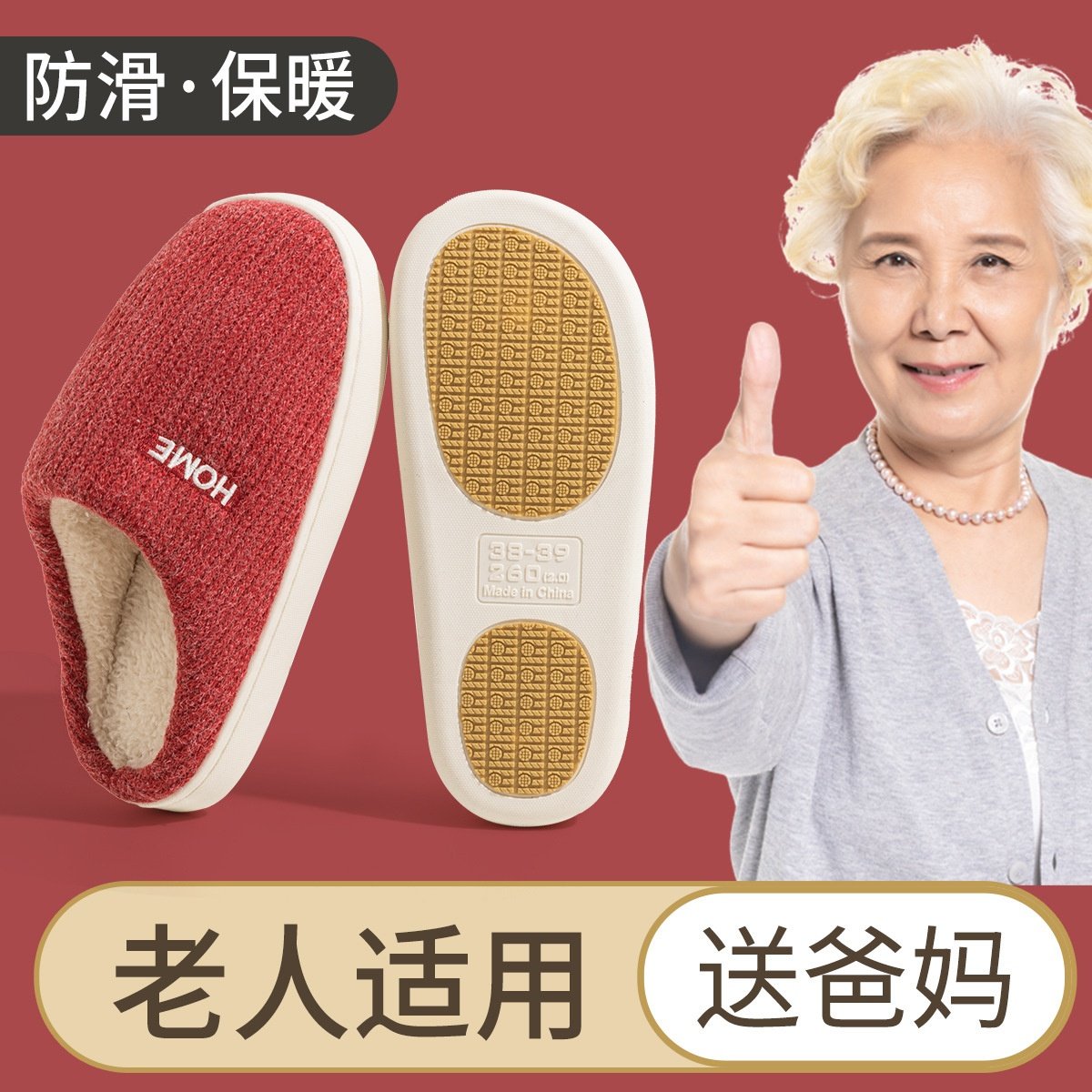 防滑棉拖鞋女士冬季2025新款室内家居保暖加绒孕妇老人毛绒拖鞋男