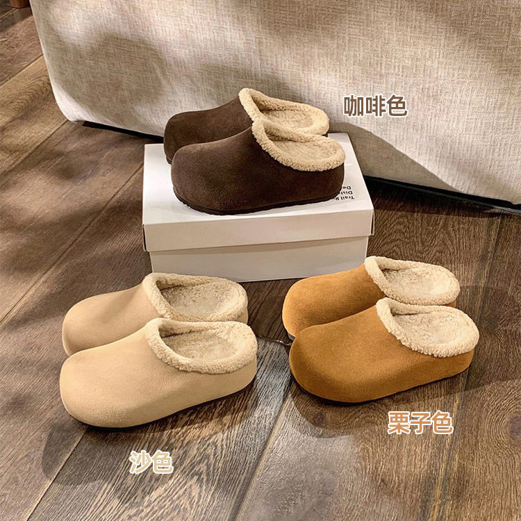 真皮羊羔毛小土豆雪地靴~6cm厚底保暖加绒毛毛包头勃肯拖鞋女半拖