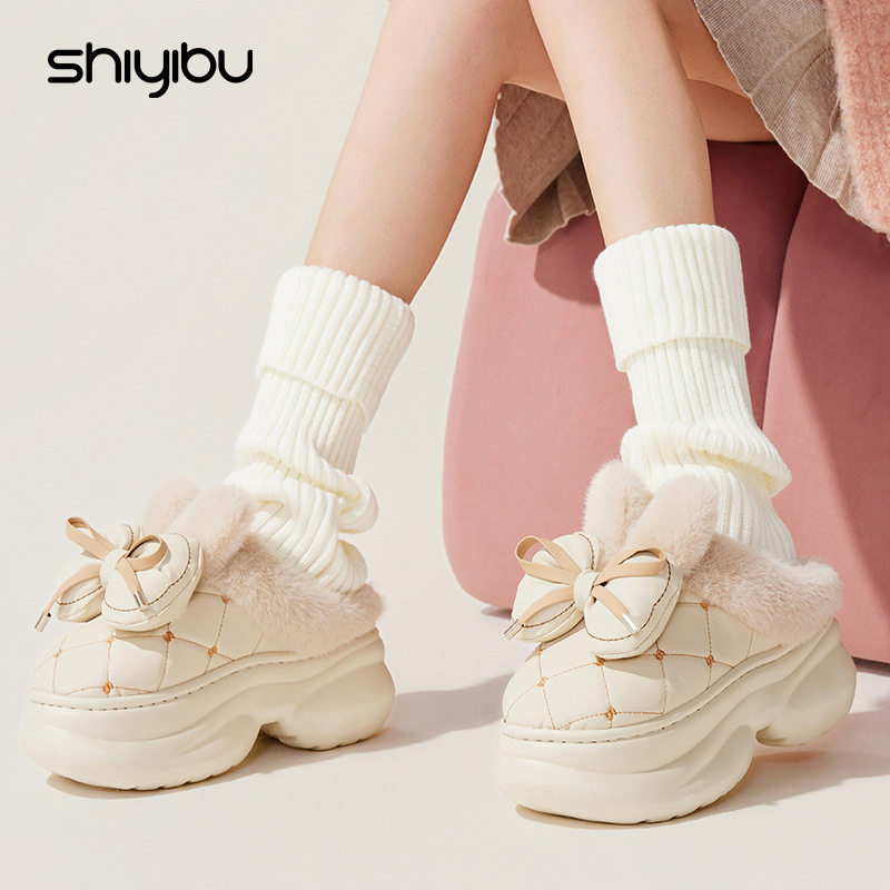 2025新款蝴蝶结棉拖鞋女外穿防水防滑冬季加厚毛毛绒保暖居家居鞋