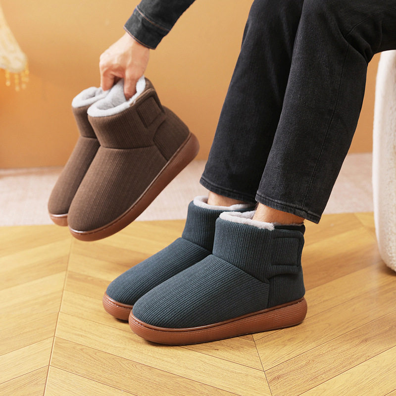 冬季加绒加厚保暖棉鞋男居家室内外穿防滑中老年人棉拖鞋高包跟