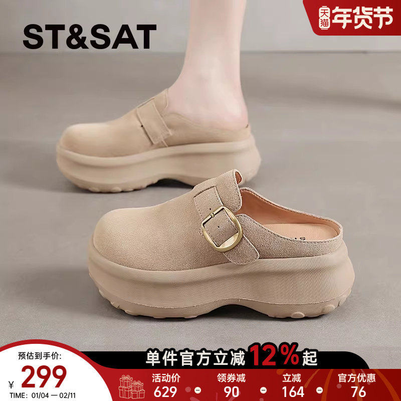 星期六松糕厚底勃肯鞋女2025新款秋冬休闲配裙子增高一脚蹬半拖鞋