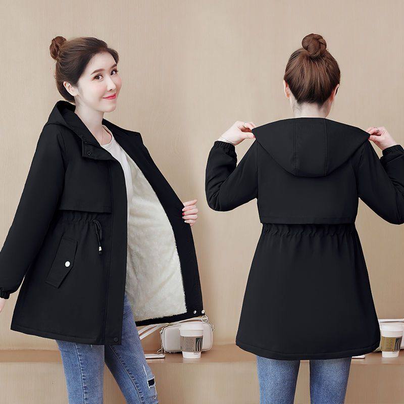 加绒加厚风衣中长款冬季棉服2025新款外套女百搭收腰显瘦洋气