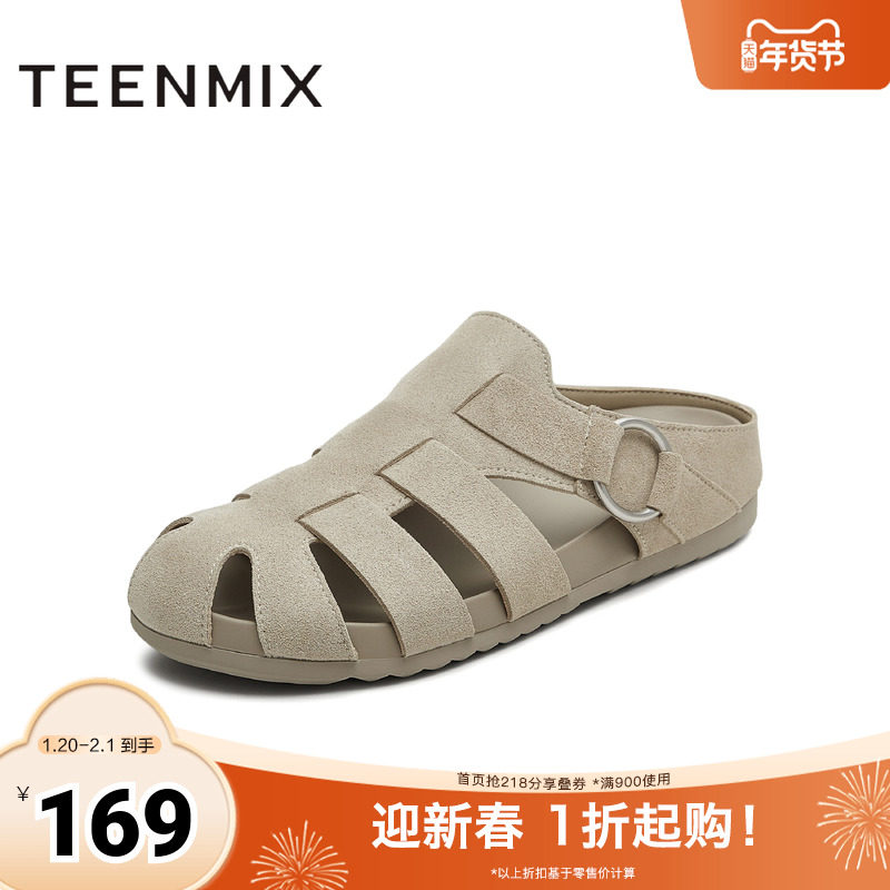 天美意2025新款休闲百搭半拖鞋复古百搭女罗马凉鞋KL012BL5