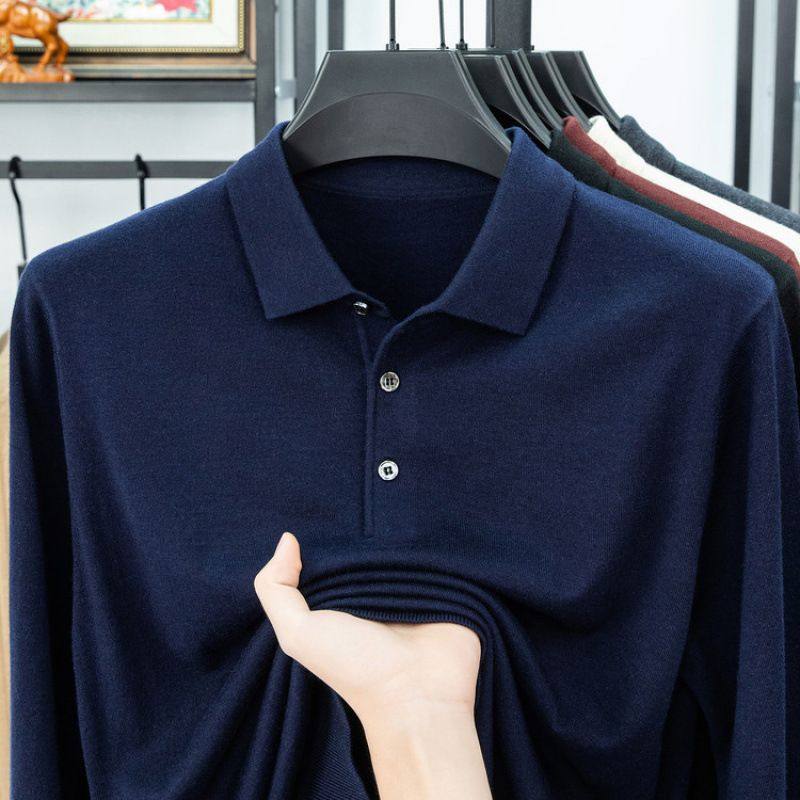 2025秋冬新款男士加厚羊毛衫中年爸爸装POLO衫宽松翻领针织衫毛衣