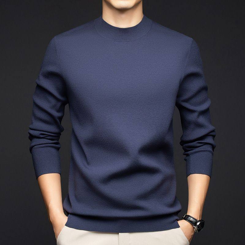 秋冬季新款圆领羊毛衫男士休闲纯色内搭保暖打底针织衫毛衣男装