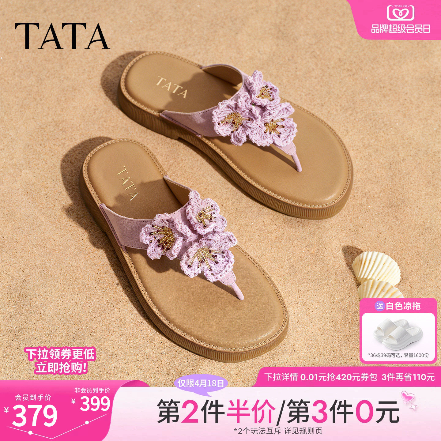TATA他她女鞋2026夏季度假人字拖百搭时尚潮流女凉拖鞋子YFG07BT6