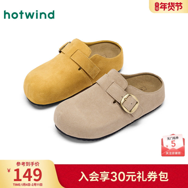 热风复古勃肯鞋女2025年秋季新款休闲包头半拖鞋一脚蹬灰色女鞋子