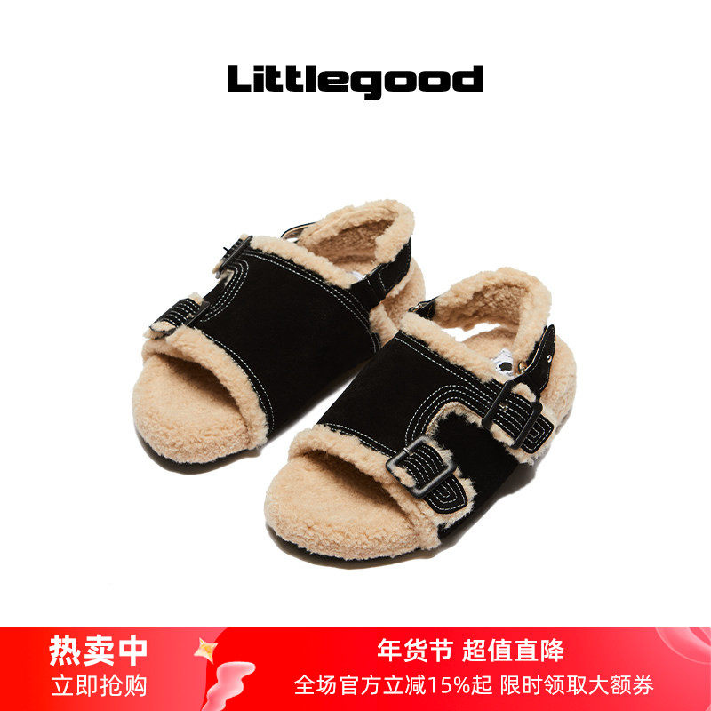 【冬季新品】littlegood复古毛毛拖鞋女新款外穿百搭厚底棉拖鞋