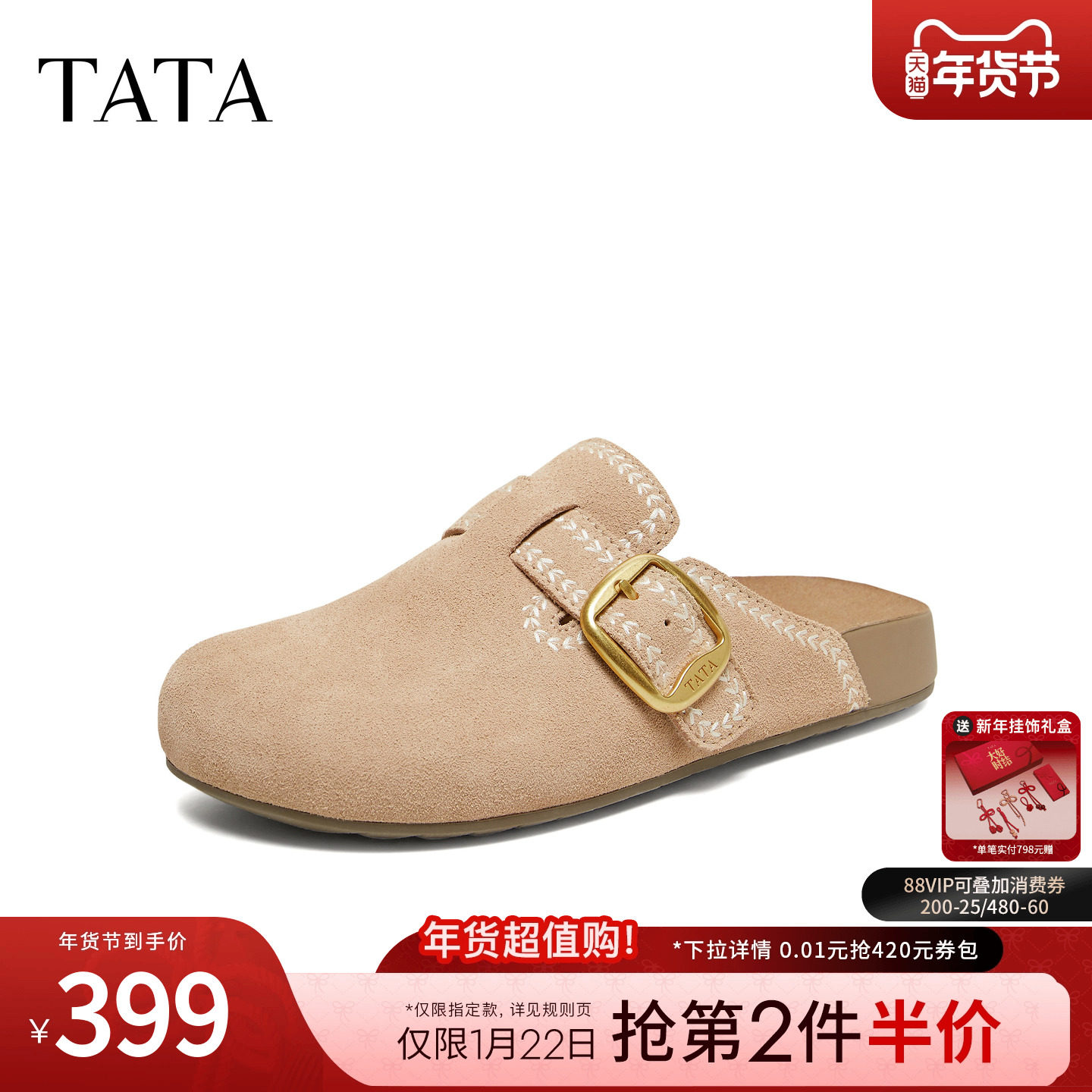 TATA他她女鞋2026夏季新款勃肯鞋时尚百搭拖鞋后空凉鞋KM804BH6