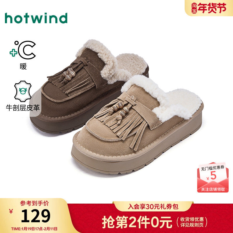 热风厚底雪地靴半拖女款2025年冬季新款加绒保暖休闲棉拖鞋女鞋子