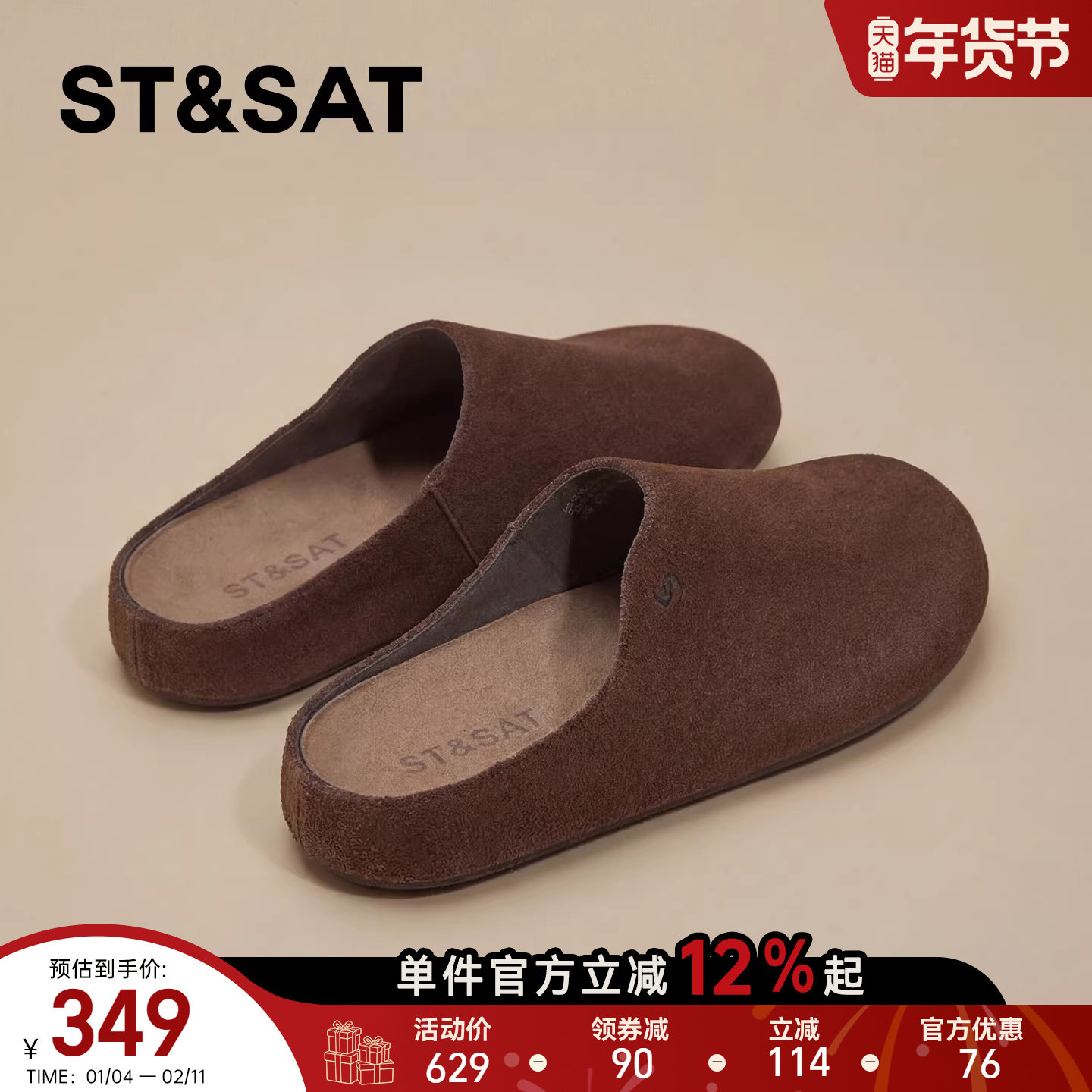 星期六厚底半拖鞋女2026春季新款米白增高显瘦百搭时尚通勤勃肯鞋