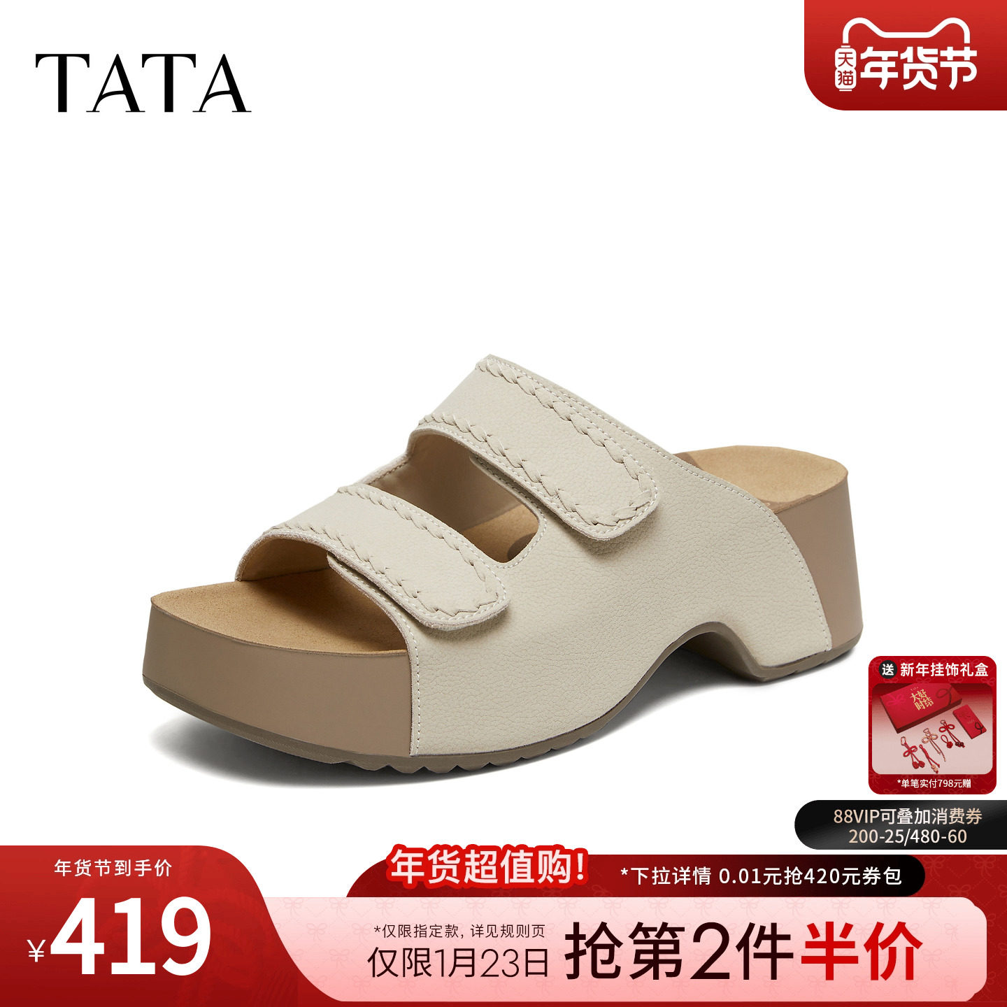 TATA他她女鞋2026夏季勃肯鞋厚底凉鞋增高休闲鞋外穿拖鞋CML05BT6