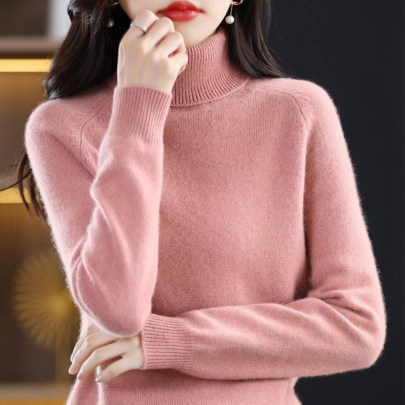 秋冬新款高翻领羊毛打底衫加厚插肩长袖毛衣女套头女式上衣打底衫