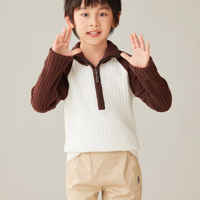 100%羊毛衫男童半拉链针织衫毛衣儿童羊绒衫高领拼色百搭韩版外穿