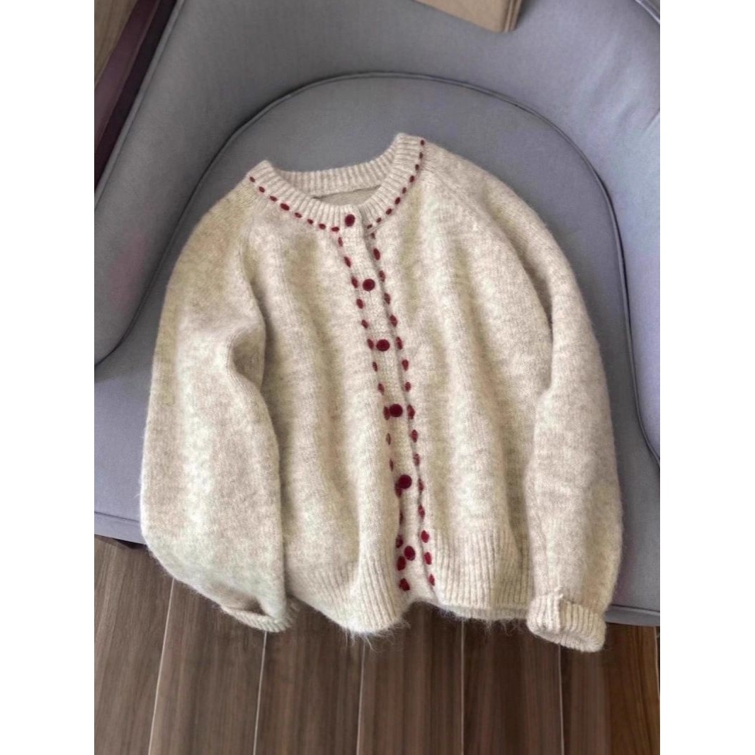 法式复古软糯针织衫开衫女2025春秋新款慵懒设计感羊驼绒毛衣外套