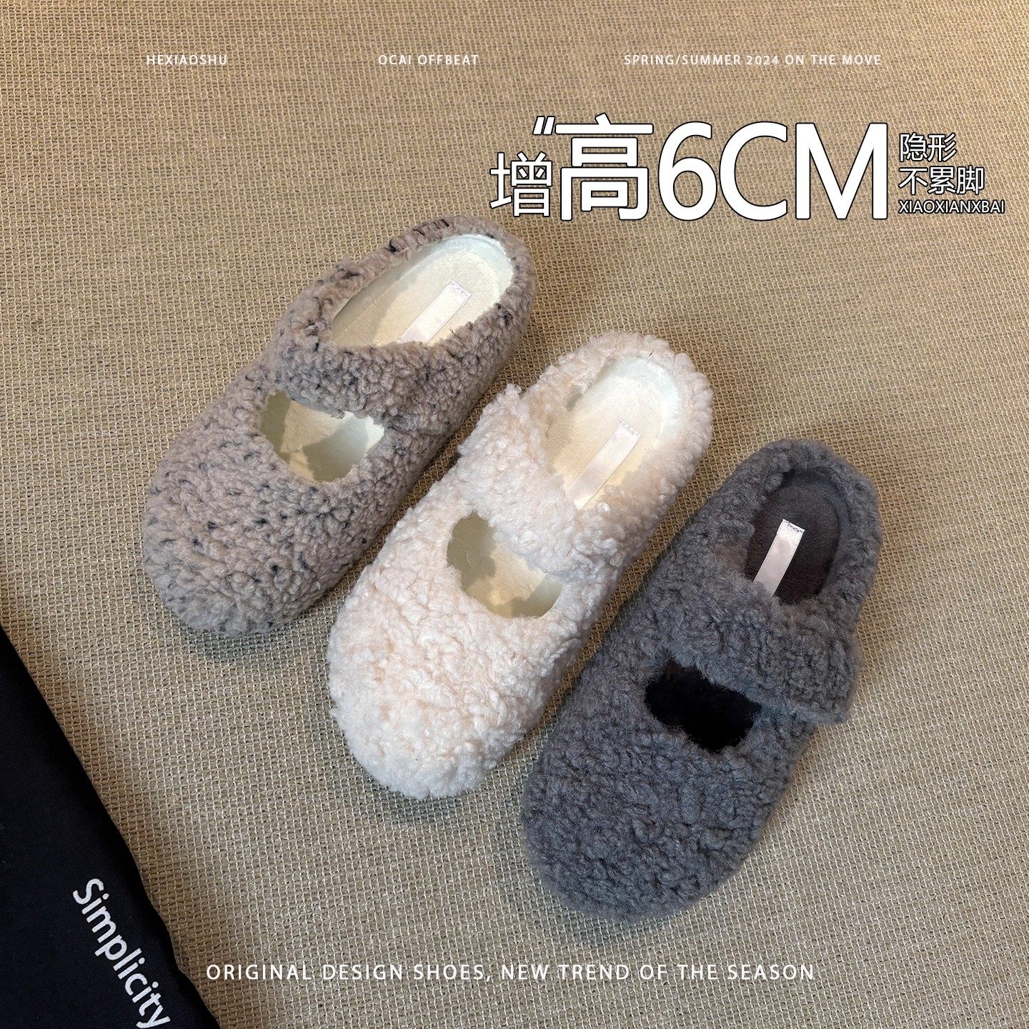 毛茸茸内增高加绒包头毛毛拖鞋女2025秋冬新款百搭一脚蹬保暖棉鞋