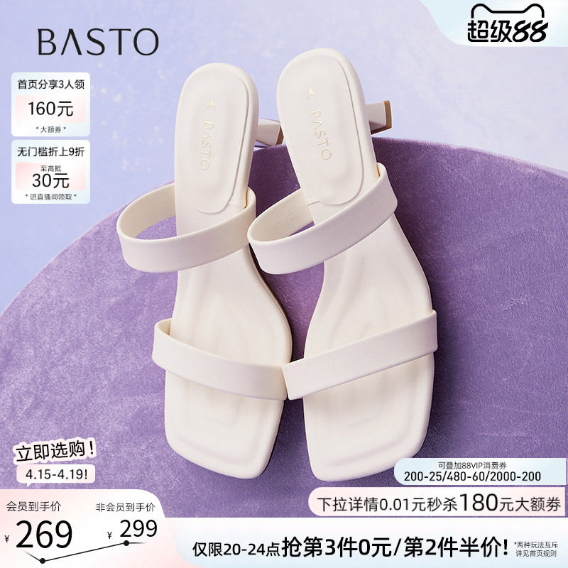 百思图夏季商场新款时尚通勤一字拖细高跟外穿女拖鞋B5297BT5